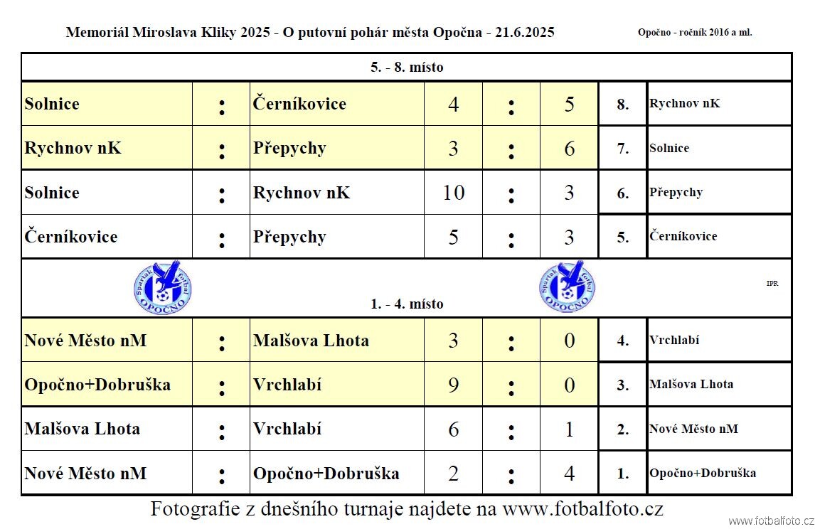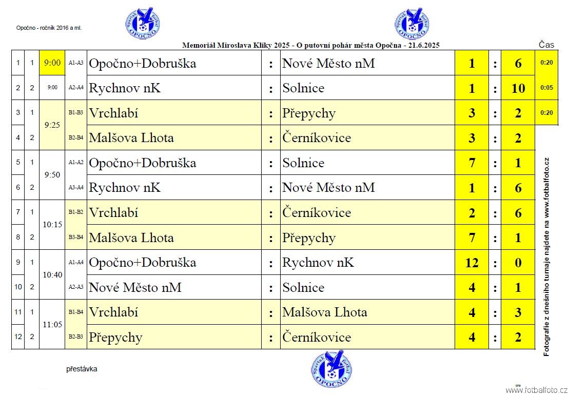 250621 - Opočno - Memoriál Miroslava Kliky r. 2016 - ©PR - 0017 - Solnice 250621 - Opočno - Memoriál Miroslava Kliky r. 2016 - ©PR - 0020 - Rychnov 250621 - Opočno - Memoriál Miroslava Kliky r. 2016 - ©PR - 0134 - Přepychy 250621 - Opočno - Memoriál Miroslava Kliky r. 2016 - ©PR - 0135 - Opočno+Dobruška 250621 - Opočno - Memoriál Miroslava Kliky r. 2016 - ©PR - 0202 - Nové Město 250621 - Opočno - Memoriál Miroslava Kliky r. 2016 - ©PR - 0206 - Malšova Lhota 250621 - Opočno - Memoriál Miroslava Kliky r. 2016 - ©PR - 0272 - Černíkovice 250621 - Opočno - Memoriál Miroslava Kliky r. 2016 - ©PR - 0276 - Vrchlabí 250621 - Opočno - Memoriál Miroslava Kliky r. 2016 - ©PR - 1 - Tabulka skupiny 250621 - Opočno - Memoriál Miroslava Kliky r. 2016 - ©PR - 2 - Výsledky skupiny 250621 - Opočno - Memoriál Miroslava Kliky r. 2016 - ©PR - 3 - Tabulka finále 250621 - Opočno - Memoriál Miroslava Kliky r. 2016 - ©PR - 4 - Výsledky finále Zahájení turnaje8 obrázkyMomentky z turnaje402 obrázkyVyhodnocení turnaje68 obrázkyDiváci18 obrázky